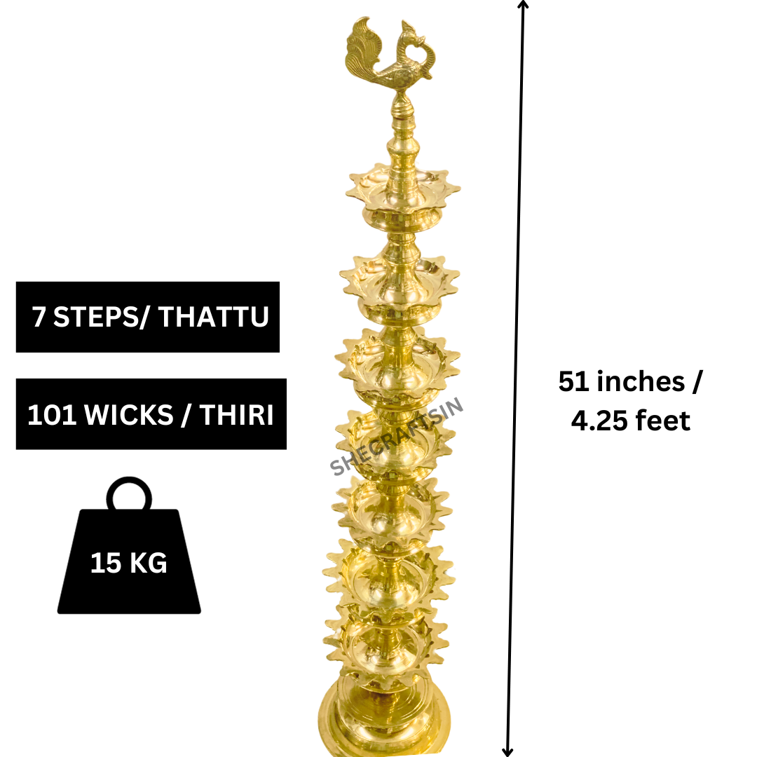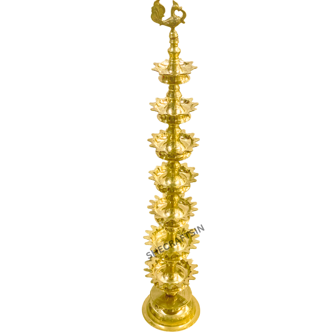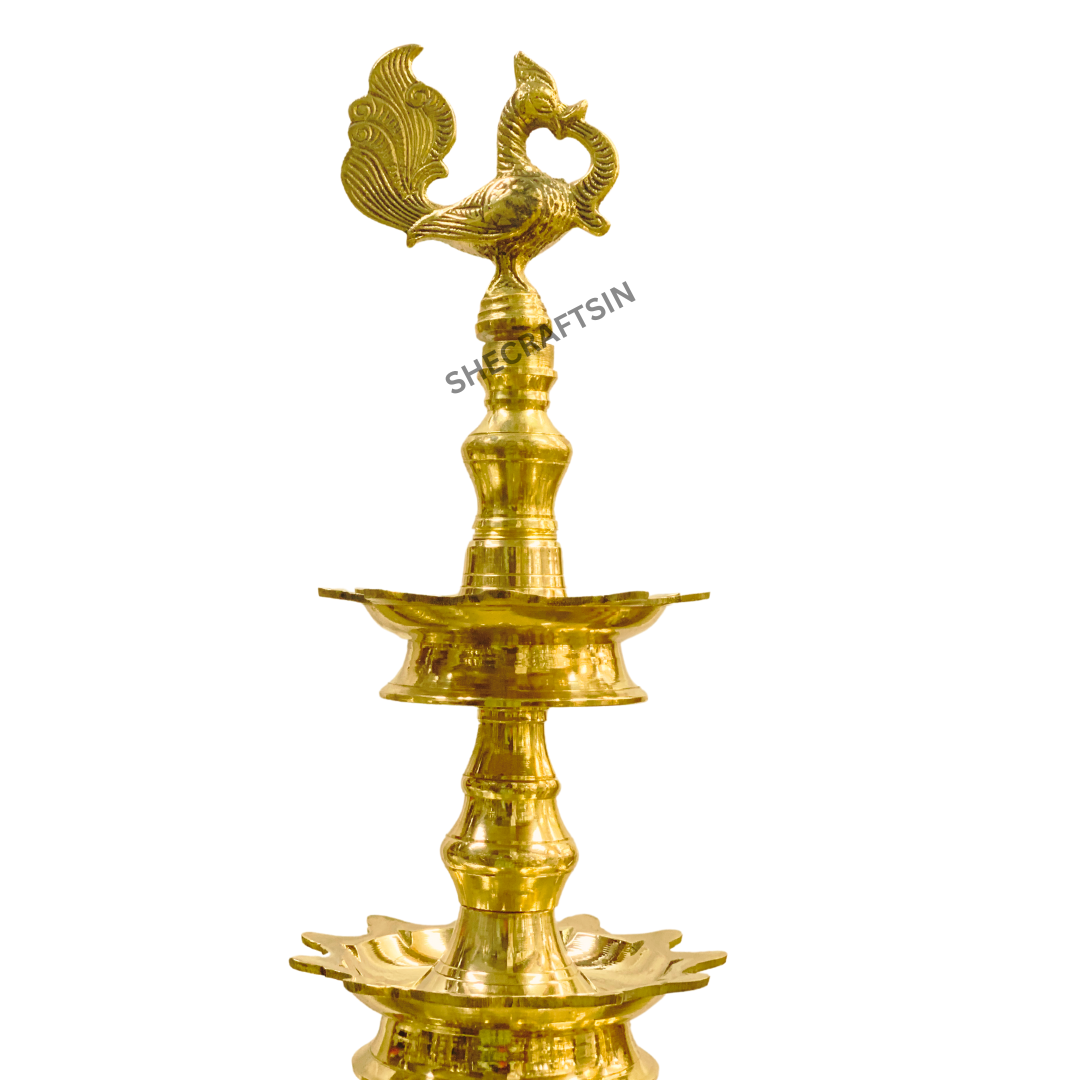 Introducing Our Exquisite Brass Peacock-Headed Deepasthambham from SheCraftsIn. SheCraftsIn takes great pride in presenting our meticulously crafted Brass Peacock-Headed Deepasthambham, a symbol of divine illumination and artistic grandeur. This majestic piece stands at an impressive 4.25 feet in height, making it a statement of elegance and spiritual significance.