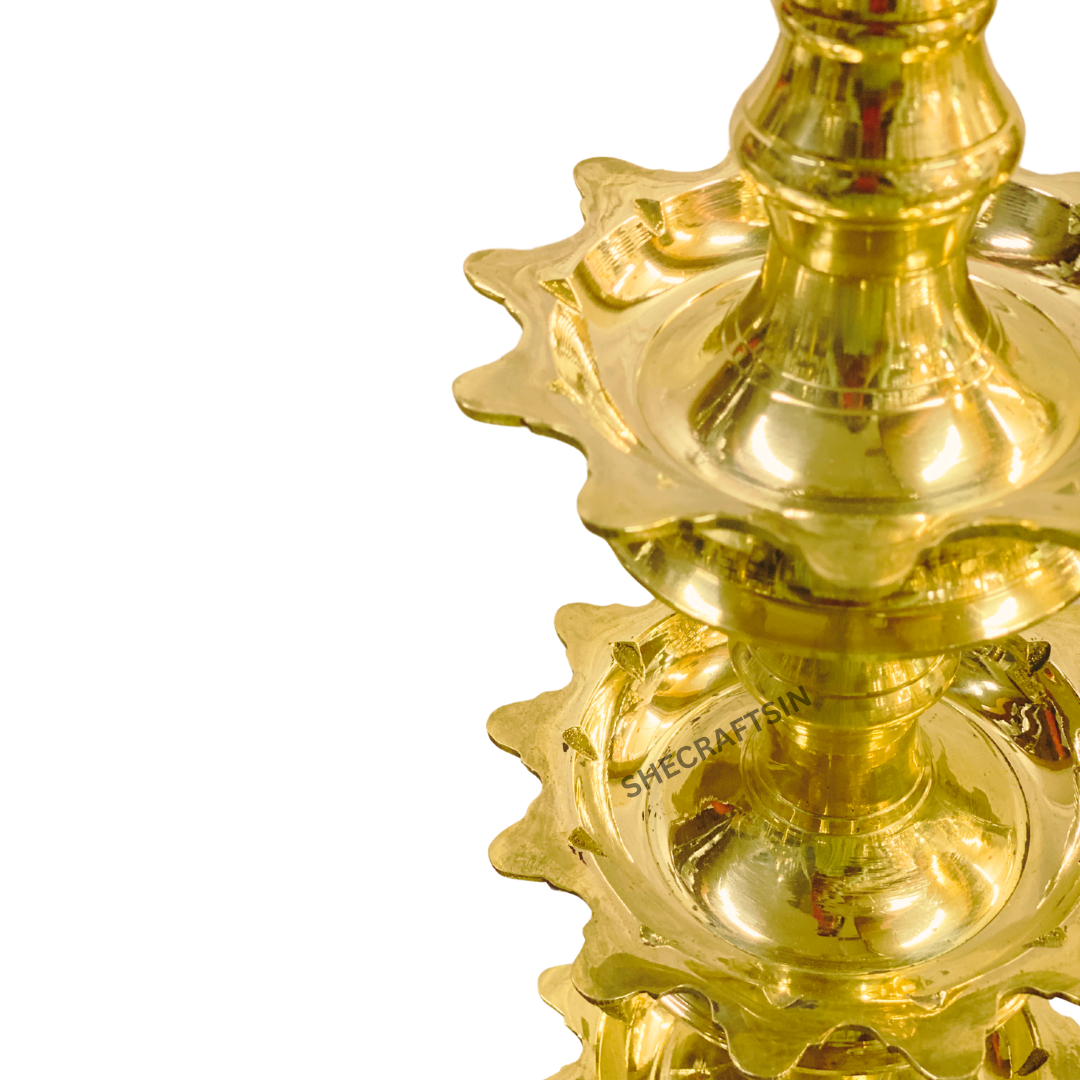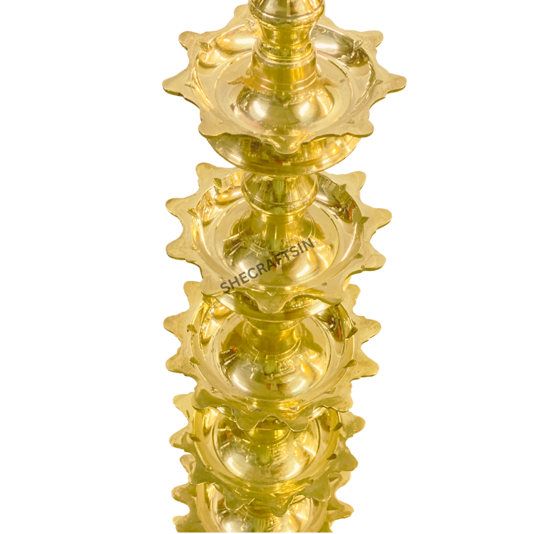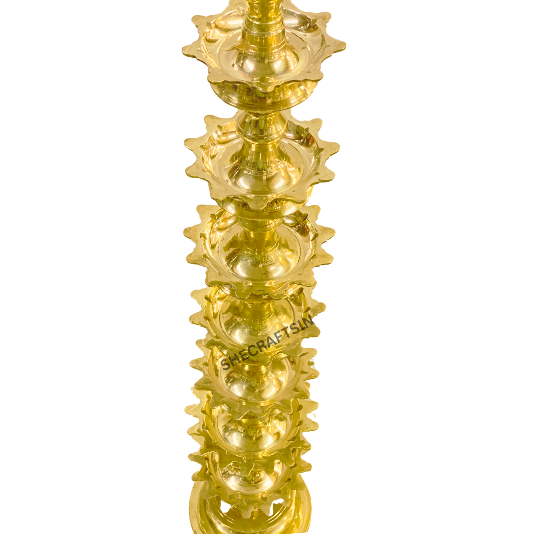 Introducing Our Exquisite Brass Peacock-Headed Deepasthambham from SheCraftsIn. SheCraftsIn takes great pride in presenting our meticulously crafted Brass Peacock-Headed Deepasthambham, a symbol of divine illumination and artistic grandeur. This majestic piece stands at an impressive 4.25 feet in height, making it a statement of elegance and spiritual significance.