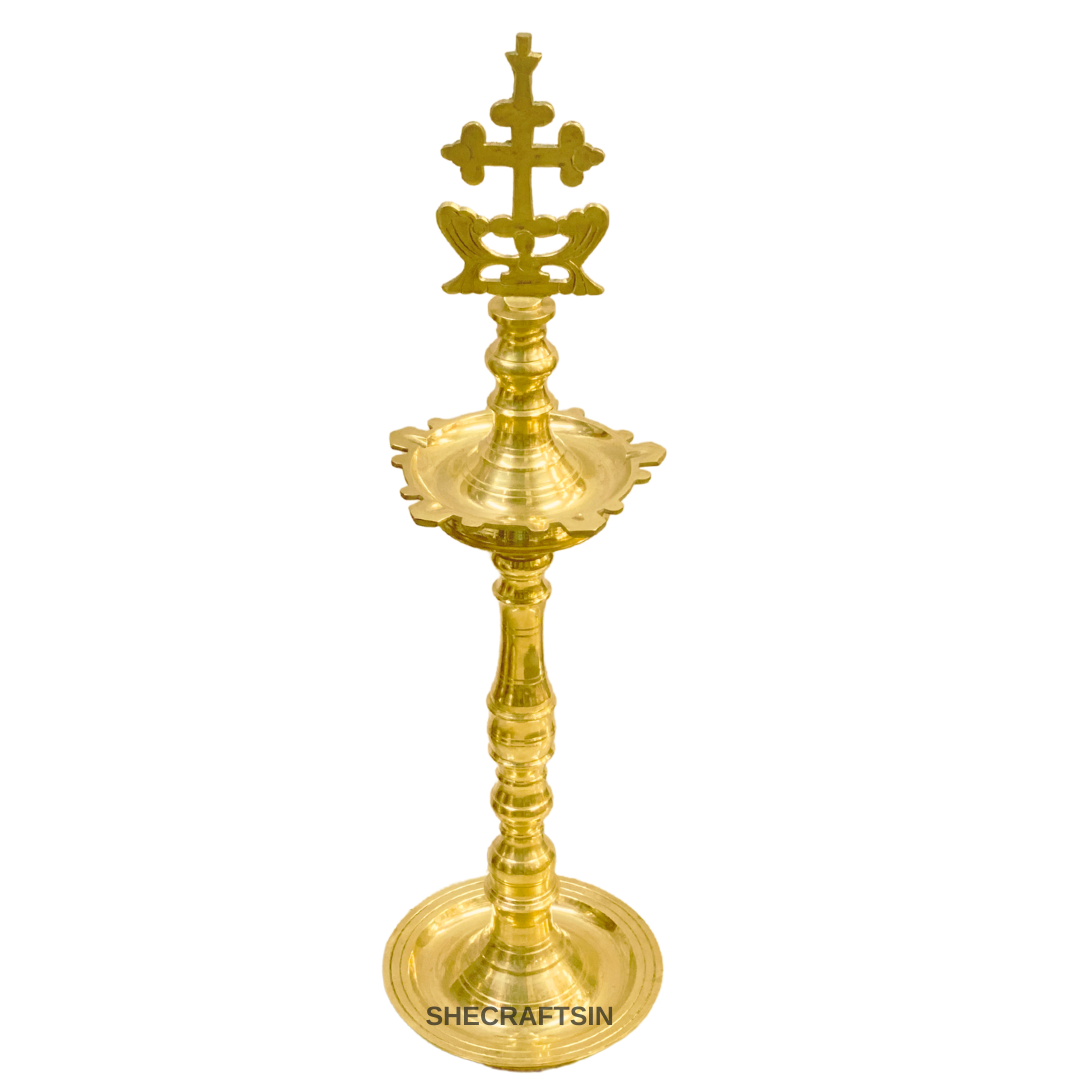 Radiant Devotion: The SheCraftsIn Brass Cross Lamp, Oil Lamp, Sleeba Cross Head Lamp, and Kurishu Vilakku for Churches and Home Decoration