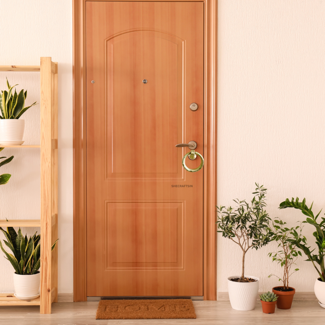 SheCraftsIn presents a unique Brass Door Knocker to enhance the design of traditional home doors in Kerala. It's round design and golden ring feature ensures durability and strength. Perfect to fit Manichithrathazhu style doors, this door knocker is a must-have accessory for your pooja room!
