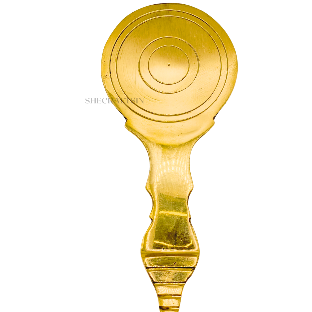 A brass handcrafted Valkannadi is a traditional and ornate mirror typically used for Vishukani preparations and other pooja (worship) purposes in Kerala, India. Vishukani is an important tradition in Kerala observed during the Malayalam New Year (Vishu), usually celebrated in April. Here's more information about the significance and use of a brass handcrafted Valkannadi for Vishukani and pooja: