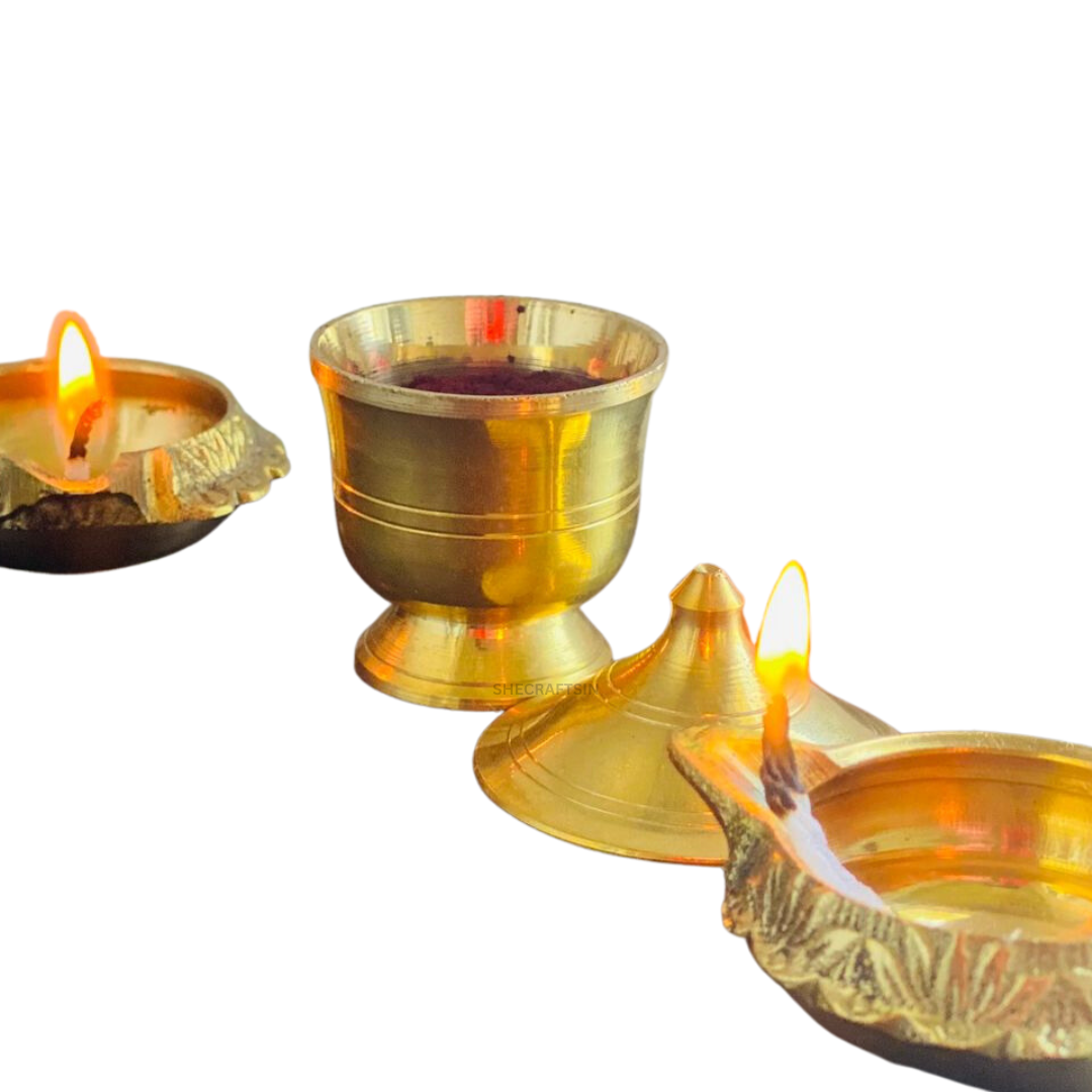 Traditional Aesthetics: The Brass Kumkuma Cheppu is often intricately designed and crafted with ornate patterns, engravings, and embellishments. It serves as a decorative element in households, adding to the overall aesthetic appeal and cultural ambiance. The craftsmanship and artistic value of the Kumkuma Cheppu make it a prized possession and a symbol of tradition.