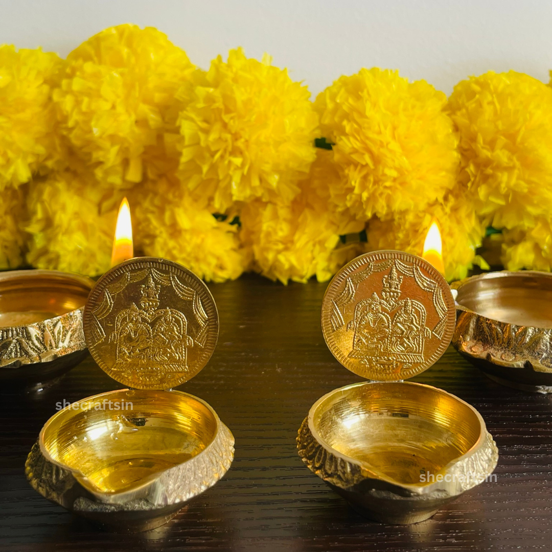 Light this beautiful lakshmi kubera coin lamp in your pooja room
