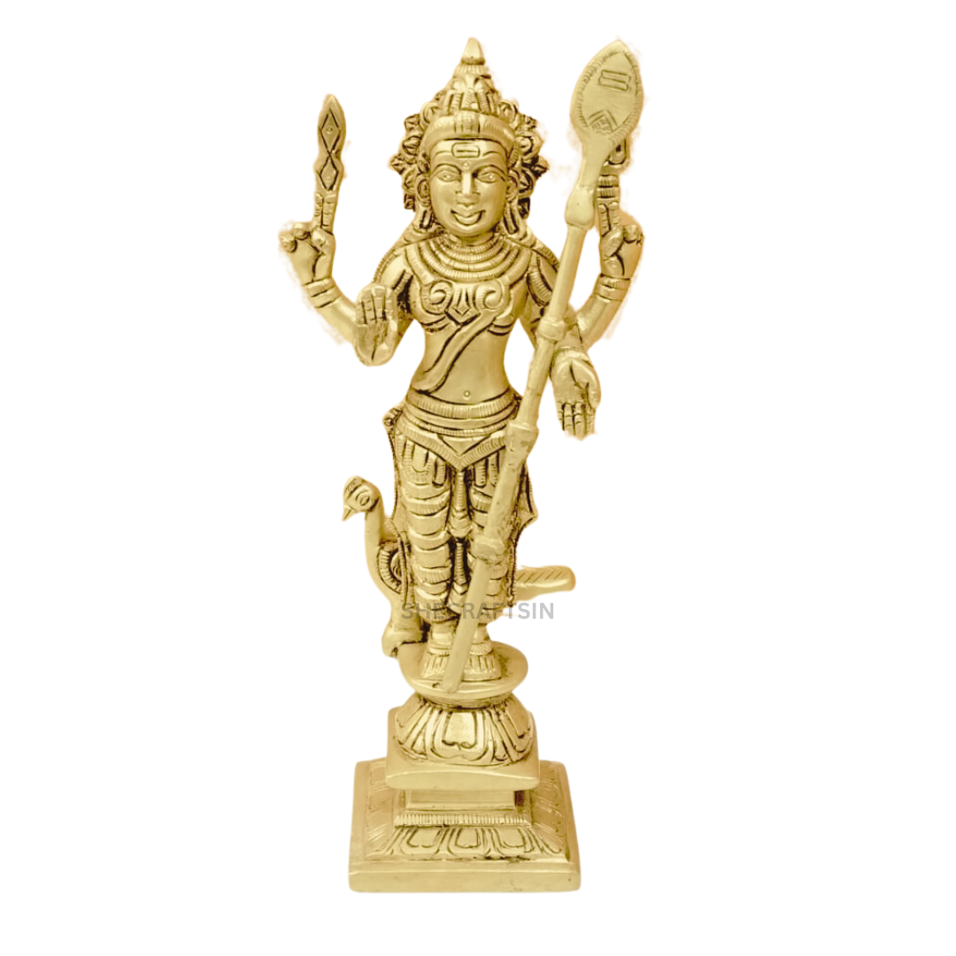 This brass murugan statue is a perfect addition to any home or office. Crafted from brass and featuring exquisite detailing, also known as Palani Andavan or Skandan. This durable and beautiful statue makes an impressive addition to any decor. Worshipping a brass Murugan idol, also known as Lord Murugan, can hold various benefits for devotees. Lord Murugan is a revered deity in Hinduism, particularly in South India, and is associated with courage, wisdom, victory, and protection. Here are some potential benefits of worshipping a brass Murugan idol:
