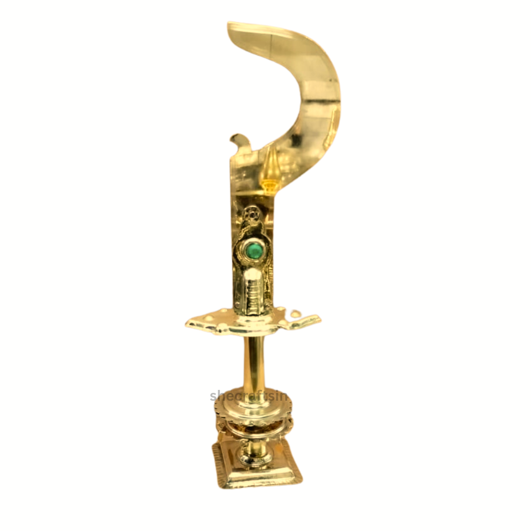 The brass pallival is expertly crafted with high-quality brass. This traditional sword is a classic for any temple and perfect for ceremonial use. Its solid brass construction ensures a long-lasting piece.