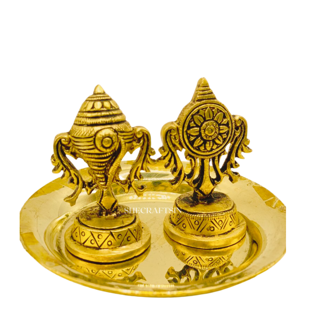 BRASS SHANKH AND CHAKRA WITH PLATE