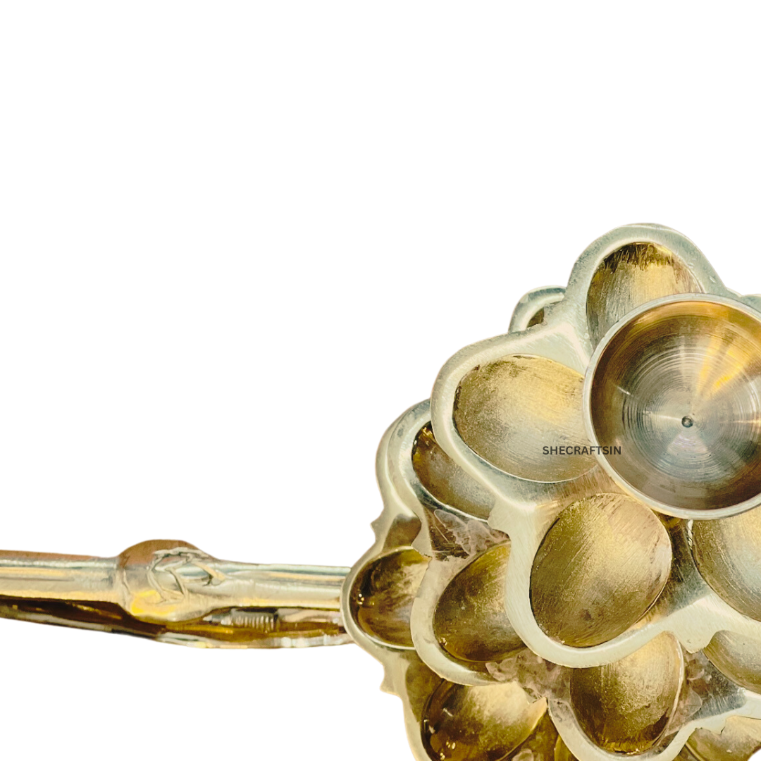 This Bronze Handmade Step Arathi is the perfect addition to any spiritual ritual. Expertly crafted from bronze, it is designed to light up your prayer space with its three steps. It is a perfect choice for Pooja in both temples and at home.