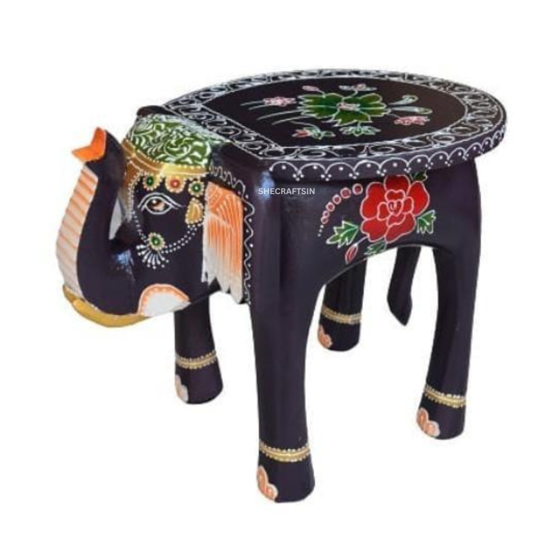 INDIAN HANDPAINTED WOODEN ELEPHANT TABLE | TABLE DECOR | LIVING ROOM STYLING | BLACK
