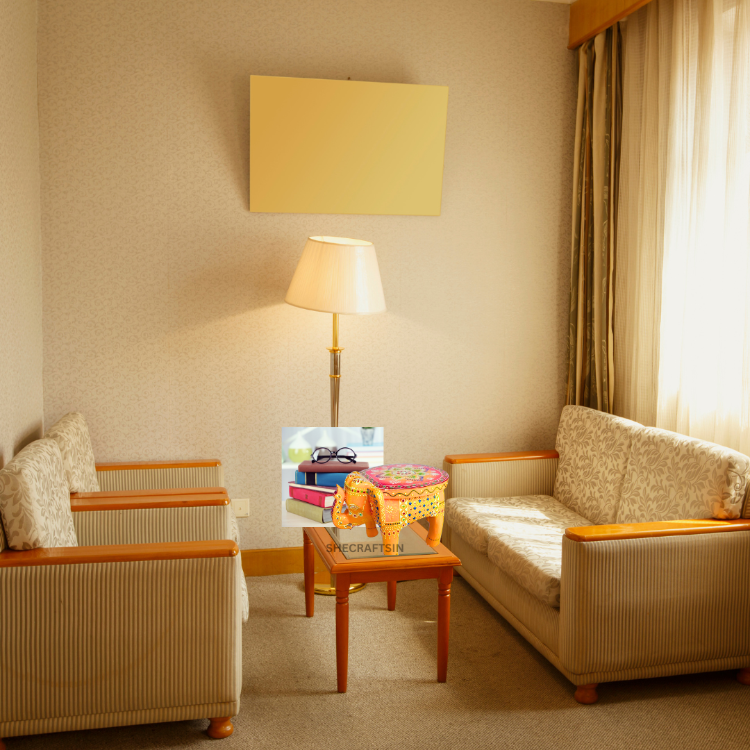 This designer wooden elephant table is a unique piece of art to add to your home. Carefully crafted from premium wood, it features an intricate design with a stable base. Perfect for smaller spaces, the modern design adds a touch of style to any room. This gorgeous wooden elephant stand is handpainted in warm earth tones for a delightful addition to your living room decor. It's made of durable wood and is sure to become a conversation piece. Give your home a unique touch with this delightful stand. This handpainted elephant stand brings style and character to any living room. Crafted from natural wood, it features a unique design that's sure to dazzle and delight. The stand adds an eye-catching presence while providing a convenient place to store items. This Wooden Handpainted Elephant Stand is the perfect addition to any living room. It is handpainted and made of wood, for a vibrant and stylish statement piece. Show off your modern boho style while creating an artistic statement in your home. This wooden handpainted elephant stand is the perfect addition to your living room decor. Crafted from quality wood, it is hand-painted This handcrafted wooden elephant stand is a beautiful addition to any living room decor. Its intricate Indian design and traditional hand painting will add a unique cultural flair to your home. The stand is made from sturdy wood and has a compact footprint, making it the perfect choice for smaller spaces with intricate details, for lasting beauty and an added artistic dimension. Showcase your favorite items, it is sure to impress guests with its warm, organic vibes. This high-quality wooden handpainted elephant stand is the perfect way to express your international friendship and share a part of Indian culture and heritage. It is an ideal gift for any occasion, sure to bring joy and delight. Enjoy the unique beauty of this traditional craftsmanship! This wooden handpainted elephant stand is a unique addition to any room. Intricately detailed with precise craftsmanship, it is sure to be a conversation piece for years to come. The wooden construction ensures it won't easily tip over, so it's safe and secure.
