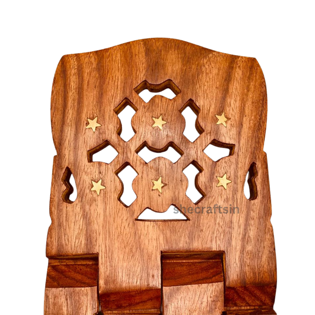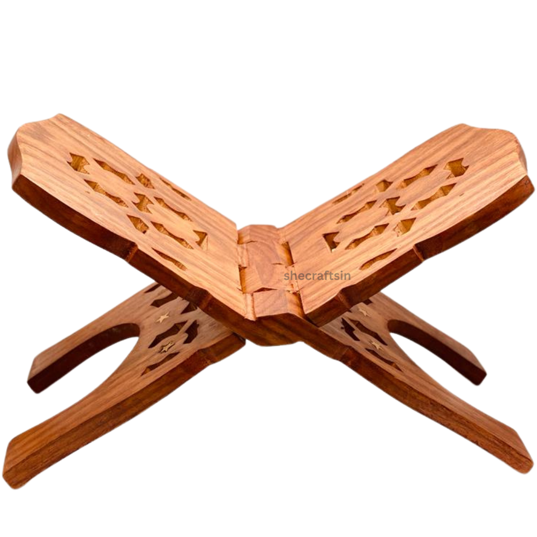 A wooden religious stand designed for reading sacred texts like the Bhagavad Gita, Ramayana, Bible, and Quran serves as a meaningful and practical accessory for individuals and communities seeking a dedicated space for spiritual reflection and study. Here's how such a stand can be utilized: