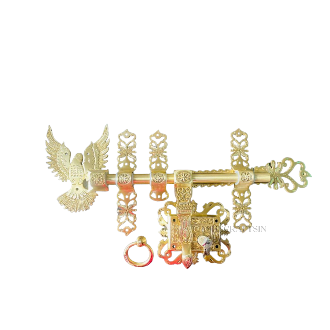 This classic brass manichithrathazhu with bird head is a great way to upgrade any main door. Made of traditional brass for a grand look, its intricate designs add an elegant touch of culture. Keep your home looking stylish and secure.